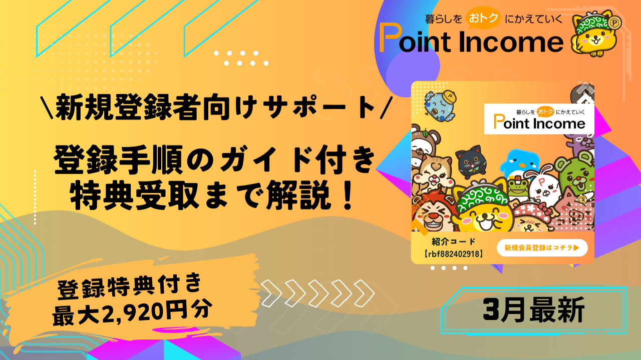 今だけ、当記事の特別招待URLからポイントインカムに登録&獲得したポイント数に応じて、2,000円分のボーナスポイントが必ずもらえます。