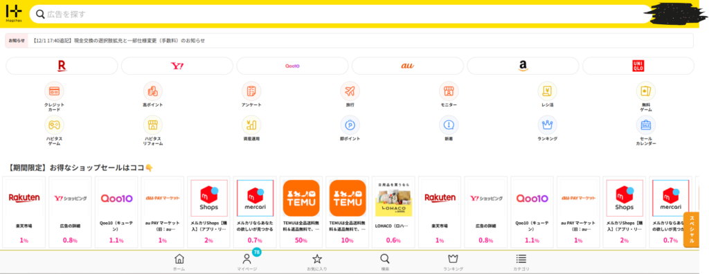 筆者は「ハピタス」からポイ活を始めたよ!当時は大学生でクレカを作りたくてポイントサイトに登録したら1万円以下もらえてポイ活沼いハマったなぁ