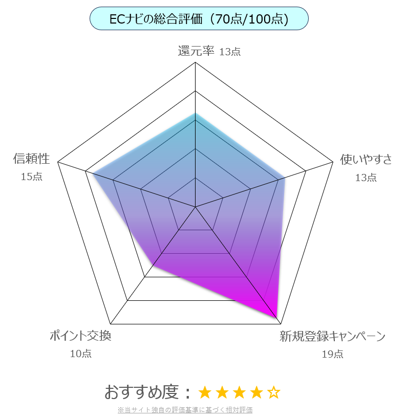 | ECナビ | ![]() | ★★★★☆ | 老舗・アンケも豊富 | 紹介リンク | tx5y2 | ◯(詳細) | 10P=1円 | 300円〜 | PeXは無料 | 最終獲得月から1年時点で3ヶ月毎 | ◯ | ◎ (運営歴20年以上) |